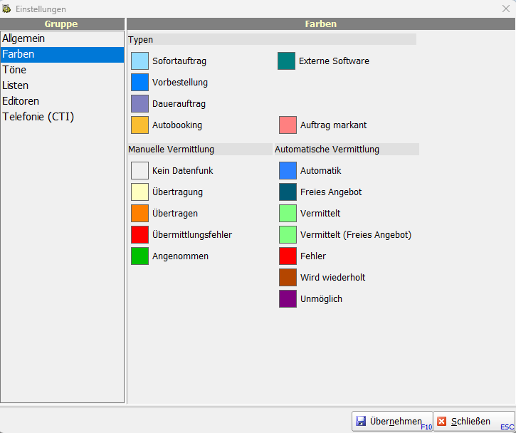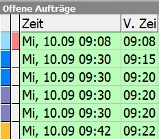Die Farben der Spalten geben Ihnen Auskunft über die Art der Aufträge und über den jeweiligen Status dazu.