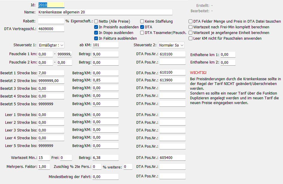 - Drücken Sie die Tastenkombination ALT + T, um den Tarif automatisch berechnen zu lassen.