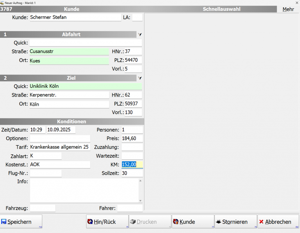 - Tragen Sie den angezeigten Kilometerwert in das Feld KM in der Auftragsmaske ein.