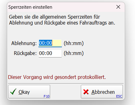 Sperrzeiten werden verwendet, um zeitliche Einschränkungen festzulegen, die greifen, wenn ein Fahrer einen Auftrag ablehnt oder zurückgibt.